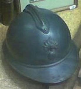 Casque portant le nom de l'intendant militaire qui le commanda ; son adoption en septembre 1915 par les poilus fit tomber de 77 à 22 % le nombre des blessures causées à la tête par l'explosion d'obus au-dessus des tranchées.