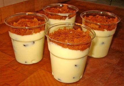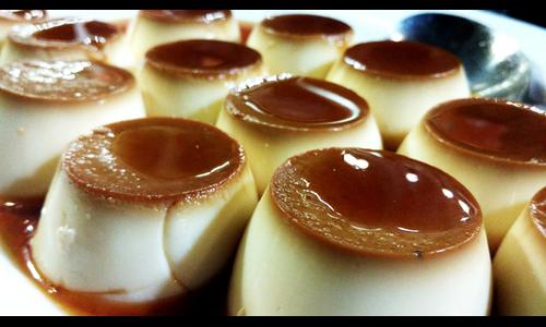 Dessert consistant en une crème épaisse cuite, parfumé avec des zestes de citron ou d'orange et de la cannelle, servi avec une couche de sucre blanc brûlé.