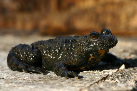 Cet amphibien, du genre Bombina, est également dit "à pieds épais". Il doit son nom à la couleur d'une partie de son corps, pouvant varier du jaune d'or à l'orange.