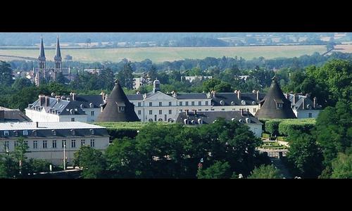 Ancienne manufacture des cristaux de la reine Marie-Antoinette, cet édifice devancé par deux fours coniques était la résidence des Schneider, la "dynastie" de patrons paternalistes des usines du Creusot.