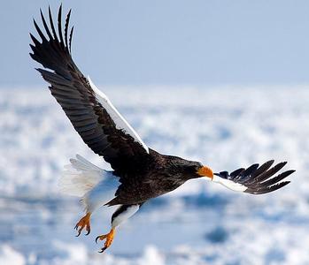 Se nourrissant principalement de saumons mais pouvant aussi s'attaquer à de jeunes phoques ou à des renards polaires, ce rapace peuple les côtes asiatiques de la mer de Béring.