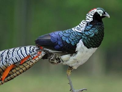 Le mâle de cette espèce originaire d'Inde et du Pakistan est très apprécié pour la roue spectaculaire qu'il effectue avec ses plumes caudales constellées de taches appelées "ocelles".