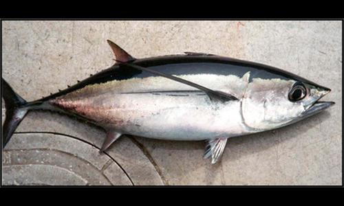 Ce poisson, de la famille des Scombridés, est également appelé germon. Il peut peser jusqu'à 25 kilos à l'âge adulte. Il est en forte régression à cause de la surpêche.