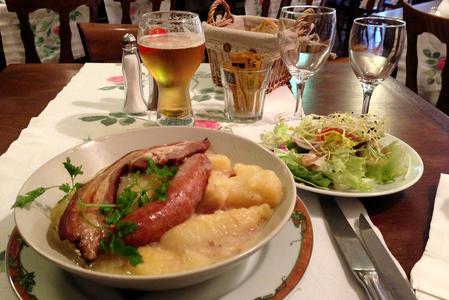 "Plat du pauvre" originaire des Ardennes, à base de pommes de terre et d'oignons, cuits dans une cocotte frottée au lard.