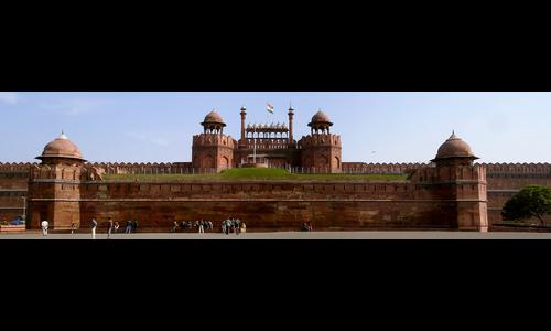 Forteresse d'architecture moghole, située à Delhi, aussi appelée Palais-fort de Shahjahanabad ou Lal Qil'ah. Elle a été construite par l'empereur moghol Shâh Jahân et doit son nom au grès rouge utilisé pour la bâtir.