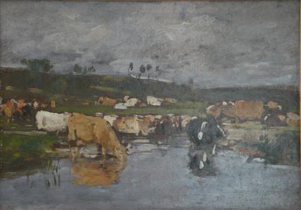 Paysage, nombreuses vaches à l'herbage (1890)