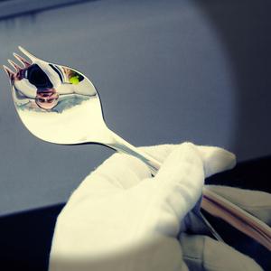 Ustensile de cuisine permettant d'attraper, de mélanger et de couper des aliments, sans les toucher directement avec les mains. Il s'agit d'un hybride entre une cuillère, une fourchette et un couteau.